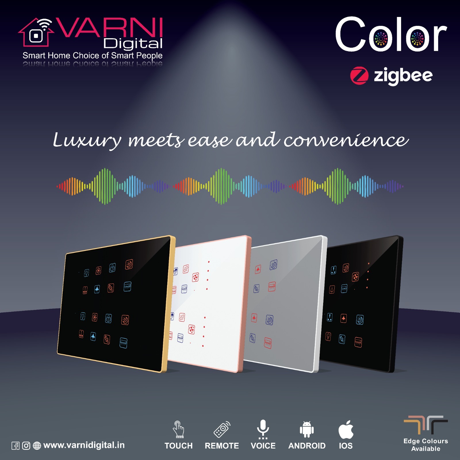 ಎಡ್ಜ್ ಸರಣಿಯ ಬಣ್ಣದ ಟಚ್ ಸ್ವಿಚ್ ಪ್ಯಾನೆಲ್ ಆಧುನಿಕ ಹೋಮ್ ಆಟೊಮೇಷನ್ ಸಾಧನವಾಗಿದ್ದು ಅದು ಮನೆಯಲ್ಲಿ ವಿವಿಧ ವಿದ್ಯುತ್ ಕಾರ್ಯಾಚರಣೆಗಳ ಮೇಲೆ ಸರಳ ನಿಯಂತ್ರಣವನ್ನು ಒದಗಿಸುತ್ತದೆ. ಇದು ಸಾಮಾನ್ಯವಾಗಿ ಟಚ್-ಸೆನ್ಸಿಟಿವ್ ಇಂಟರ್ಫೇಸ್ನೊಂದಿಗೆ ಕ್ಲೀನ್, ಕನಿಷ್ಠ ವಿನ್ಯಾಸವನ್ನು ಹೊಂದಿದೆ ಅದು ಬಳಕೆದಾರರಿಗೆ ಬೆಳಕಿನ, ತಾಪಮಾನ ಮತ್ತು ಇತರ ಸ್ಮಾರ್ಟ್ ಹೋಮ್ ಸಾಧನಗಳನ್ನು ಒಂದೇ ಟ್ಯಾಪ್ ಅಥವಾ ಸ್ವೈಪ್ನೊಂದಿಗೆ ಸುಲಭವಾಗಿ ಹೊಂದಿಸಲು ಅನುವು ಮಾಡಿಕೊಡುತ್ತದೆ. ಈ ಪ್ಯಾನೆಲ್ಗಳು ಆಗಾಗ್ಗೆ ಟಚ್ ಇಂಟರ್ಫೇಸ್ಗಾಗಿ ಕಾನ್ಫಿಗರ್ ಮಾಡಬಹುದಾದ ಬಣ್ಣ ಆಯ್ಕೆಗಳನ್ನು ಹೊಂದಿದ್ದು, ಬಳಕೆದಾರರು ತಮ್ಮ ನಿಯಂತ್ರಣ ಅನುಭವವನ್ನು ಸರಿಹೊಂದಿಸಲು ಅನುವು ಮಾಡಿಕೊಡುತ್ತದೆ.
